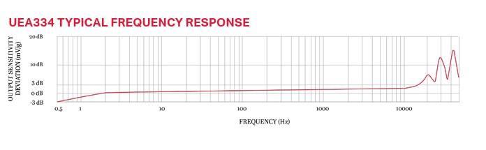 CTCのUEB332(トップ出口)およびUEA334(サイド出口)センサーシリーズは、±3 dBの許容範囲内で0.5 Hz~23 kHzの線形振動出力を組み合わせています。このセンサーの共振ピークは42 kHzであり、この1つのセンサーで振動範囲と超音波範囲の両方で高品質な出力を提供することができます。