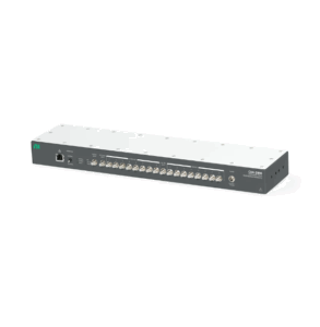 CDA-2990は、USRPソフトウェア無線デバイスを含むシステムを同期する際に使用します。外部から入力された10 MHzのリファレンス信号とPPS(pulse per second)信号を増幅して、信号を8組の出力ポートに分配します。CDA-2990は、外部から供給される信号を分配する構成で使用できます。また、GPSDO(GPS-disciplined oscillator)オプションを選択することもできます。このオプションの場合、GPS信号を基準とした恒温槽付水晶発振器(OCXO)を内蔵しており、10 MHz信号とPPS信号を内部で生成できます。