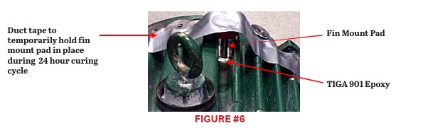 24時間の硬化サイクルの後、デブコン・プラスチックウェルダーをモーターのフィンとフィンマウントパッドの間の空隙を埋めるために追加できます。これにより、マウントの強度が向上しますが、TIGA 901で確立された導電性結合を損なうことはありません。この二次エポキシ充填により、マウントコストを削減し、図7に示されているようにフィンマウントパッドの側壁をサポートすることができます。