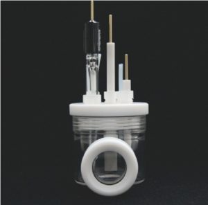 ガラスセル、テフロンキャップ、石英光学窓(直径24mm)。交換用の石英1個付き。キャップの穴は、挿入する電極に合わせて調整可能です。作業電極には、L字型電極または試料クランプの使用を推奨します。容量:50ml、100ml、150ml