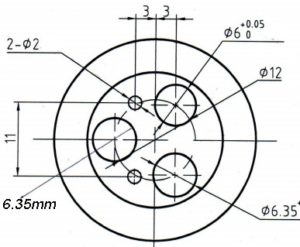 3つの穴の直径:φ6.35mm、φ6.35mm、φ6mm