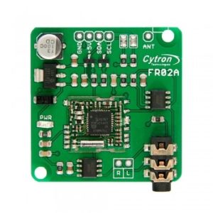 Cytronの製品。I2Cインターフェイス・ワンチップFMラジオICのTEA5767を使用し、I2Cによる制御でFMラジオを聴くことができます。3Wステレオアンプがついていますので、スピーカーを直接駆動することができます。