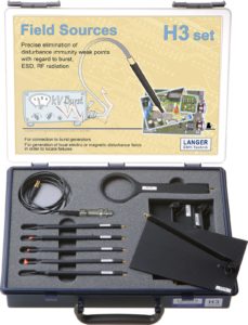フィールドソースは、アセンブリおよび機器の耐性を解析するために、パルスフィールド(ICE 61000-4-4)を被試験機器に結合させるために使用されます。これらは、被試験機器のすぐ上で手で操作する必要があります。弱点はパルスフィールドに反応し、誤作動が引き起こされます。EFT/バーストジェネレーターは、高電圧ケーブルを介してフィールドソースに電力を供給します。フィールドソースにはSMB出力があります。フィールドソース用の接続ケーブルは、SHVコネクタ付き(HV SHV-SMB 1 m)またはFischerコネクタ付き(HV FI-SMB 1 m; Fischerコネクタ S103A023)で入手可能です。注文時にご指定ください。さまざまな測定タスク向けに、異なるタイプのフィールドソースチップが提供されています。これらのチップにより、弱点をミリ単位で正確に特定したり、コンポーネント、配線、ICピンなどの定義された妨害経路上の重要な接続を検出したりすることが可能です。