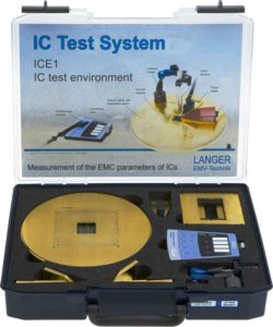 ICテストシステムは、特定の放射または伝導障害影響下での回路(IC)のEMC挙動を測定するために設計されており、伝送測定も行います。テストICは、動作中にテストされます。ICE1テスト環境は、テストICの機能環境を生成します。各測定タスクは、適切なプローブセットを使って行われます。これらのセットは、納品範囲には含まれていません。テストICはテストPC基板に取り付けられています。顧客はテストPC基板(ランガーEMV-Technik GmbHのICテスト指示書)を準備することも、ランガーEMV-Technik GmbHに注文を出すこともできます。PC基板はGND 25接地プレートに挿入され、コネクタを介してCB 0708接続ボードに接続されます。その他のICE1セットコンポーネントには、異なるPC基板をテストするためのさまざまな接地アダプタ、接続ボード制御ソフトウェア、測定信号を変換してオシロスコープで視覚化するためのオシロスコープアダプタが含まれています。ICテストステーションを設置するための追加機器も納品範囲に含まれています。