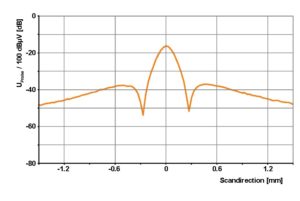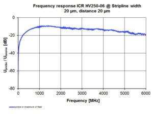 ICR RFプローブヘッドの測定コイルは測定面に垂直に配置されています。プリアンプはプローブハウジングに統合されており、バイアスティーによって電源供給されています。ICR近接場プローブは納品前に品質チェックを受けます。異なる基準配置測定が行われ、その結果に基づいて補正線が生成されます。三種類の補正線が決定されます - 標準化された補正線、Hフィールド補正線、および電流補正線。