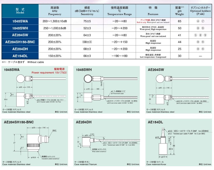 耐環境性能に優れたAEセンサです。