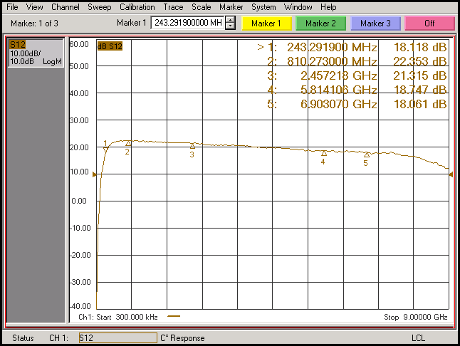 周波数範囲: 380MHz-6000MHz(240MHz-380MHzは使用可能ですが、入力SWRは少し高くなります)