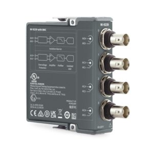 NI‑9239には、差動型アナログ入力が備わっています。 チャンネル間絶縁を備えており、テスト対象デバイスを含む全システムを絶縁率の範囲内で危険な電圧スパイクから保護します。 また、絶縁機能により、グランドループによって発生する計測誤差を最小限に抑制します。 高速かつ高確度なNI‑9239は、分解能、サンプリングレート、および入力範囲の観点からも優れた汎用アナログモジュールです。