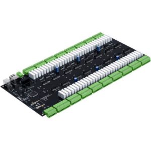 Numato のリレーボード。USB、RS485のModbus RTU、EthernetのModbus TCPと多彩な制御インターフェイスで64個のリレーのON/OFF制御を行うことができます。