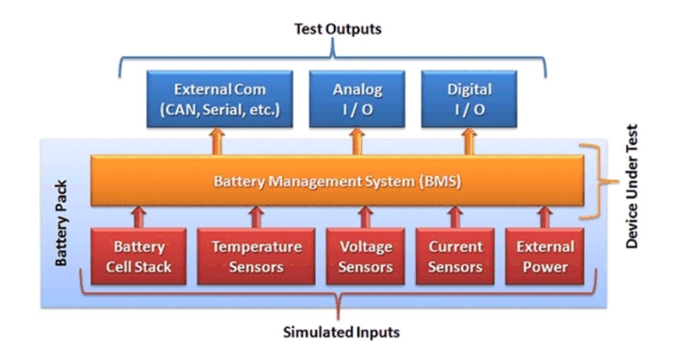 BMSシステムを効果的にテストするには、主に2つの機能が必要です。(1) 必要なセンサーとバッテリーセルスタックの入力をBMSに正確にシミュレートすること、(2) その入力の結果としてBMSシステムが生成するデジタルおよびアナログ出力を測定、収集、処理すること。