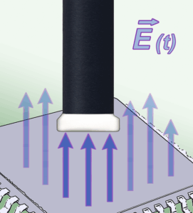 約4x4mmの電極を使用しており、これはRFS-E 03プローブヘッドの底部に位置しています。この電極は、クロックライン、ICピン、および小型コンポーネントからのEフィールドを検出できます。RFS-E 03は受動的近接場スキャナプローブです。測定のために、EフィールドプローブはPC基板のコンポーネントまたはエリアの上に配置されます。近接場プローブはシース電流減衰を持ち、電気的にシールドされています。50Ω入力を持つスペクトルアナライザーまたはオシロスコープに接続できます。Eフィールドプローブ内部には50Ω終端抵抗はありません。