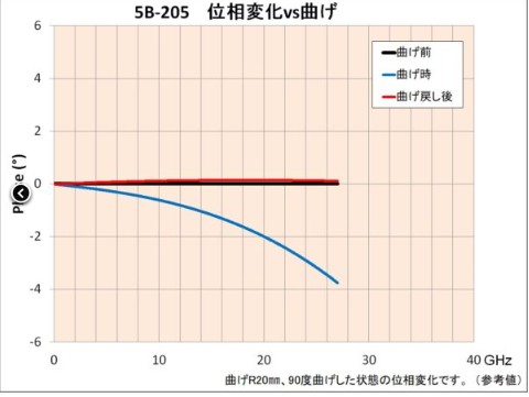 - 曲げに対して位相変化が少ない。かつ、曲げ戻しで元に戻る再現性に優れている。