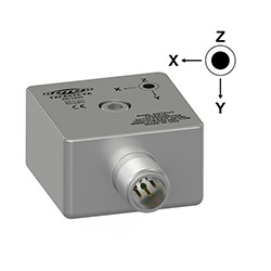 低コスト、デュアル出力三軸センサー、温度および加速度、側面出力6ピンコネクタ、500 mV/G、10 mV/°C、±15%