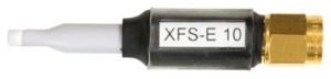 XFS-E 10スキャナープローブのプローブヘッド内の電極は、幅約0.2 mmです。このプローブを使用すると、非常に小さな電界源も特定できます。例えば、幅0.1 mmの導電経路や、マルチピンICの単一ピンなどです。測定する際は、電界プローブを対象物に配置します。XFS-E 10 プローブはパッシブの近接場プローブです。通常、プローブヘッドは測定対象物の上に直接配置されます(高電界強度)。このプローブには電流を減衰させるシースがあり、したがって電気的にシールドされています。スペクトラムアナライザや50Ω入力のオシロスコープに接続することができます。Hフィールドスキャナープローブには内部終端抵抗があります。